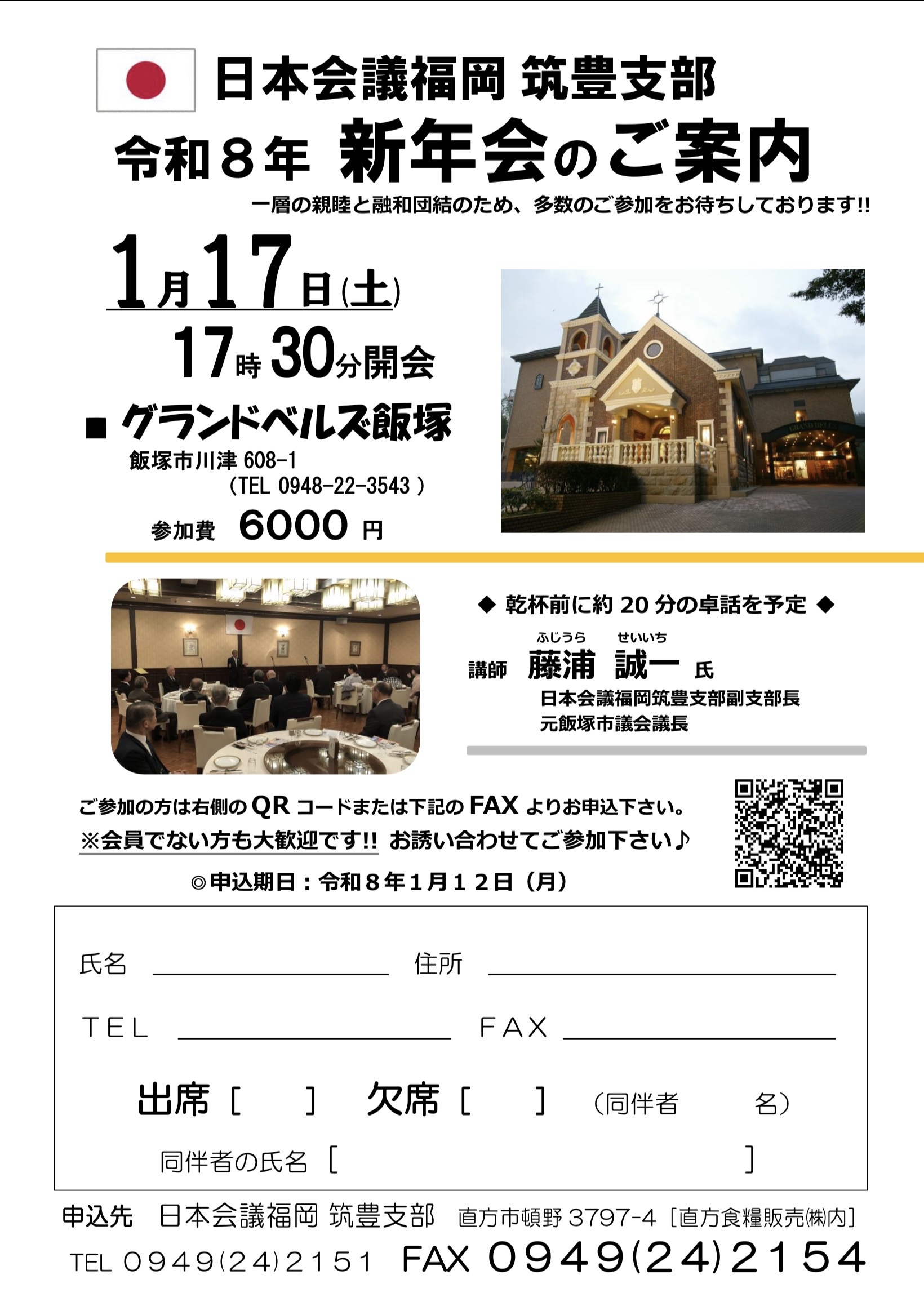 【福岡県】1月17日 日本会議福岡筑豊支部 令和8年新年会のご案内