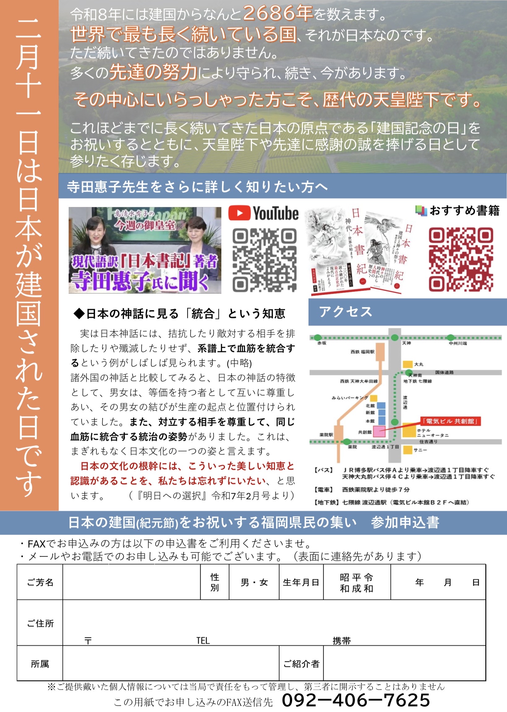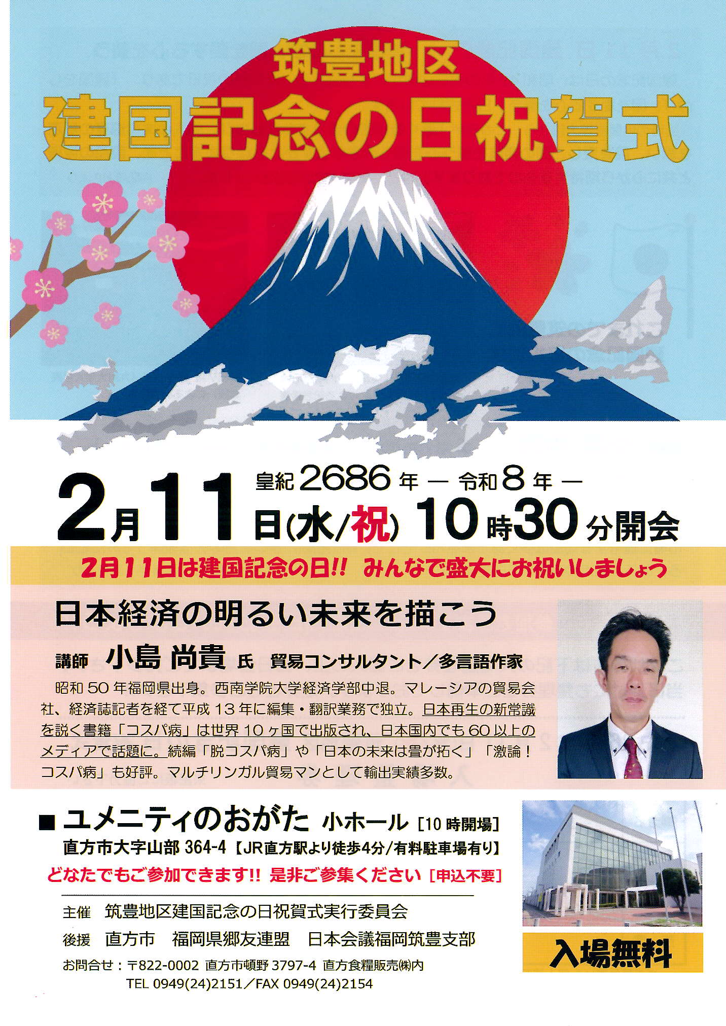【福岡県】2月11日 日本の建国(紀元節)をお祝いする福岡県民の集い