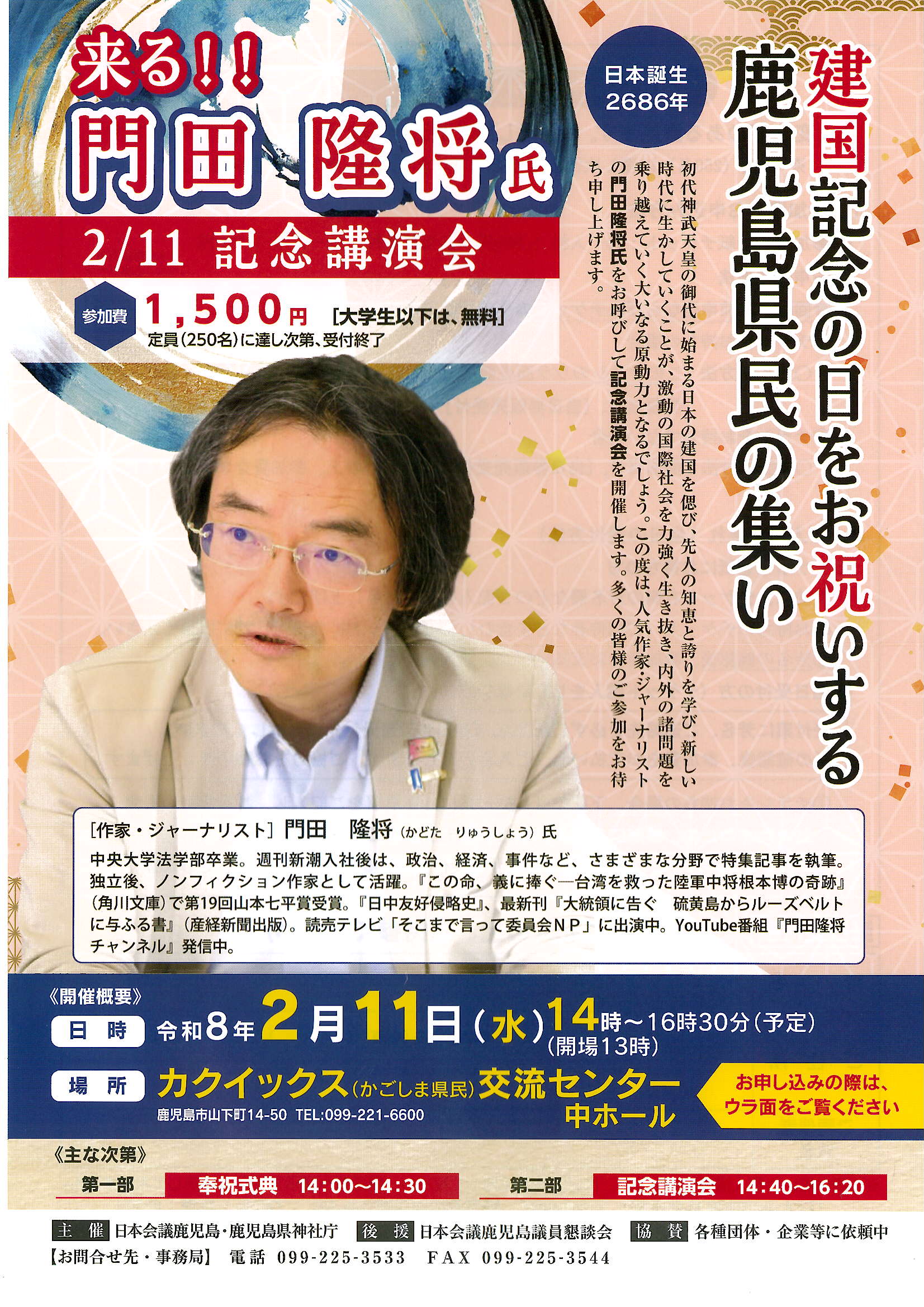 【鹿児島県】2月11日 建国記念の日をお祝いする鹿児島県民の集い