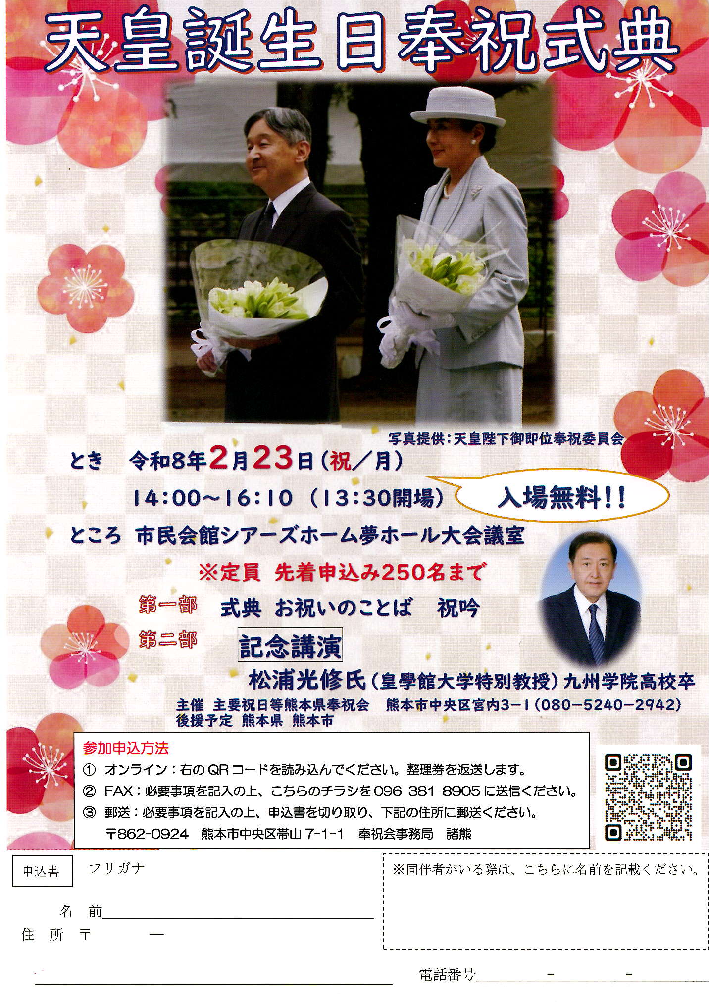 【熊本県】2月23日 天皇誕生日奉祝式典