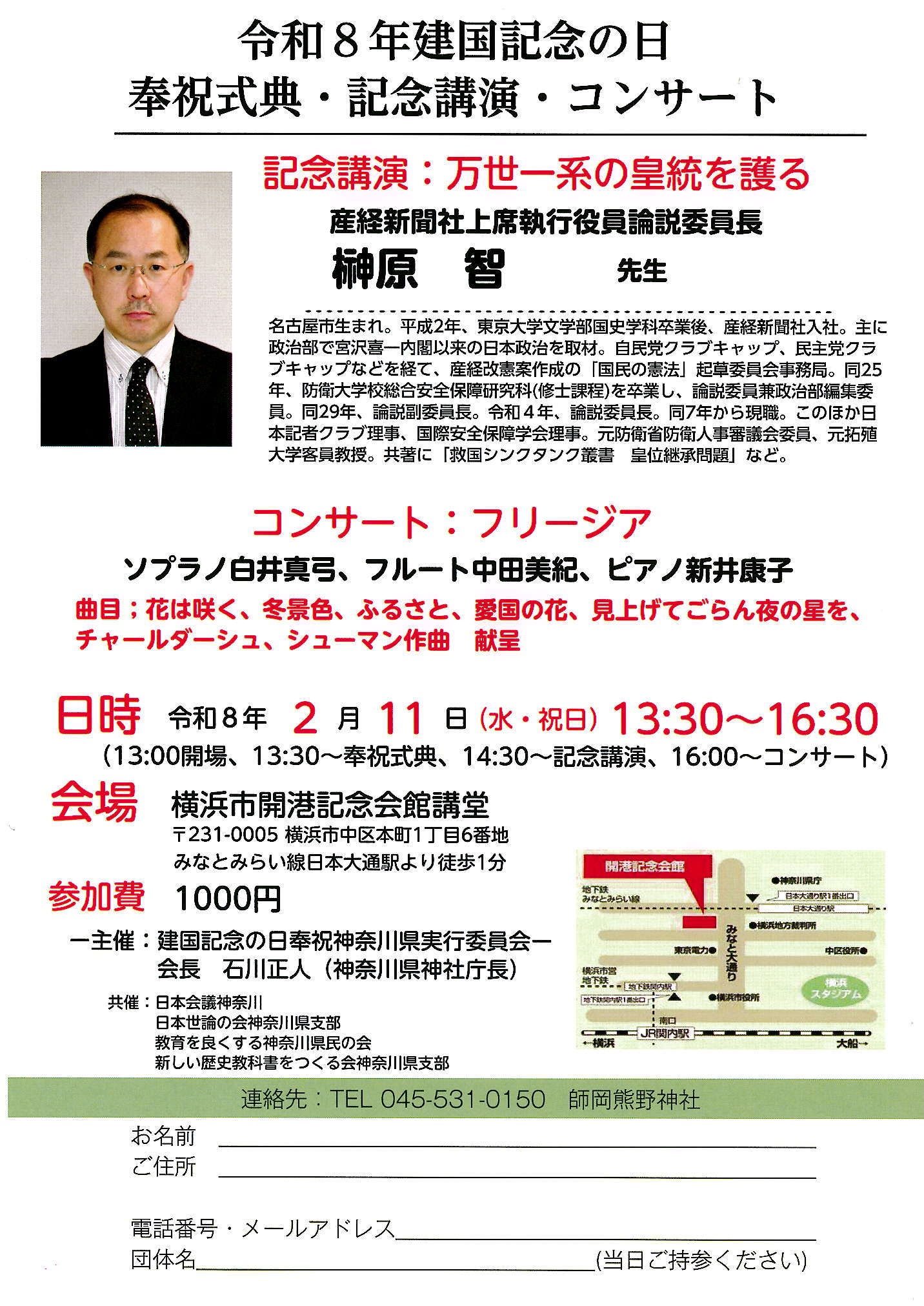 【神奈川県】2月11日 令和8年建国記念の日 奉祝式典・記念講演・コンサート