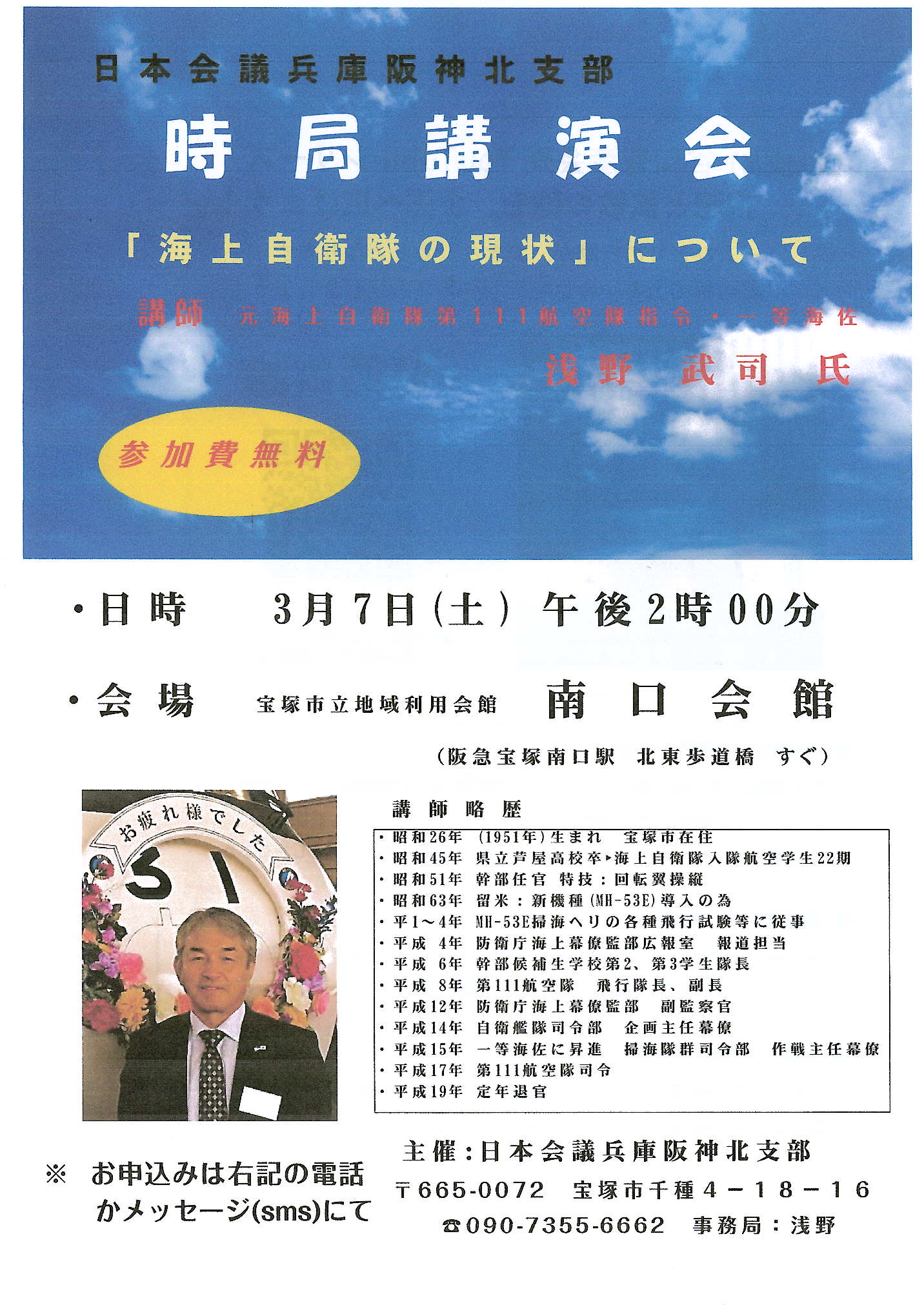 ◎講師:浅野 武司 氏(元海上自衛隊第111航空隊指令・一等海佐)