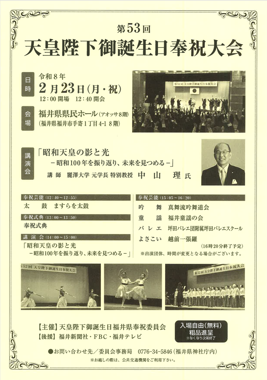 主催:天皇陛下御誕生日福井県奉祝委員会