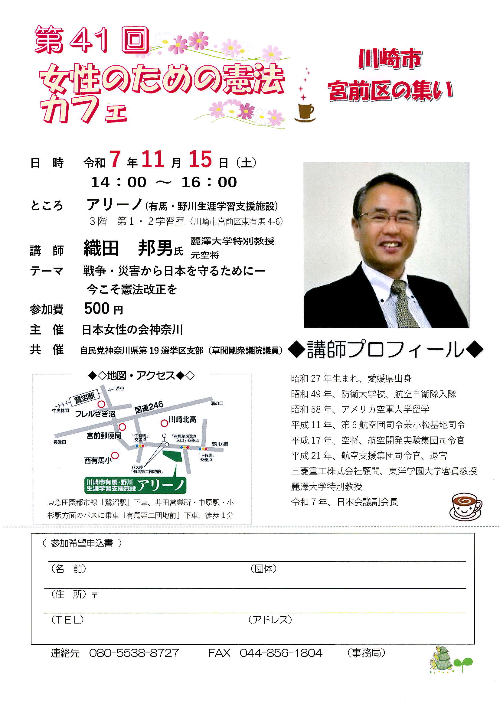 【神奈川県】11月15日 第41回 女性のための憲法カフェ 川崎市宮前区の集い
