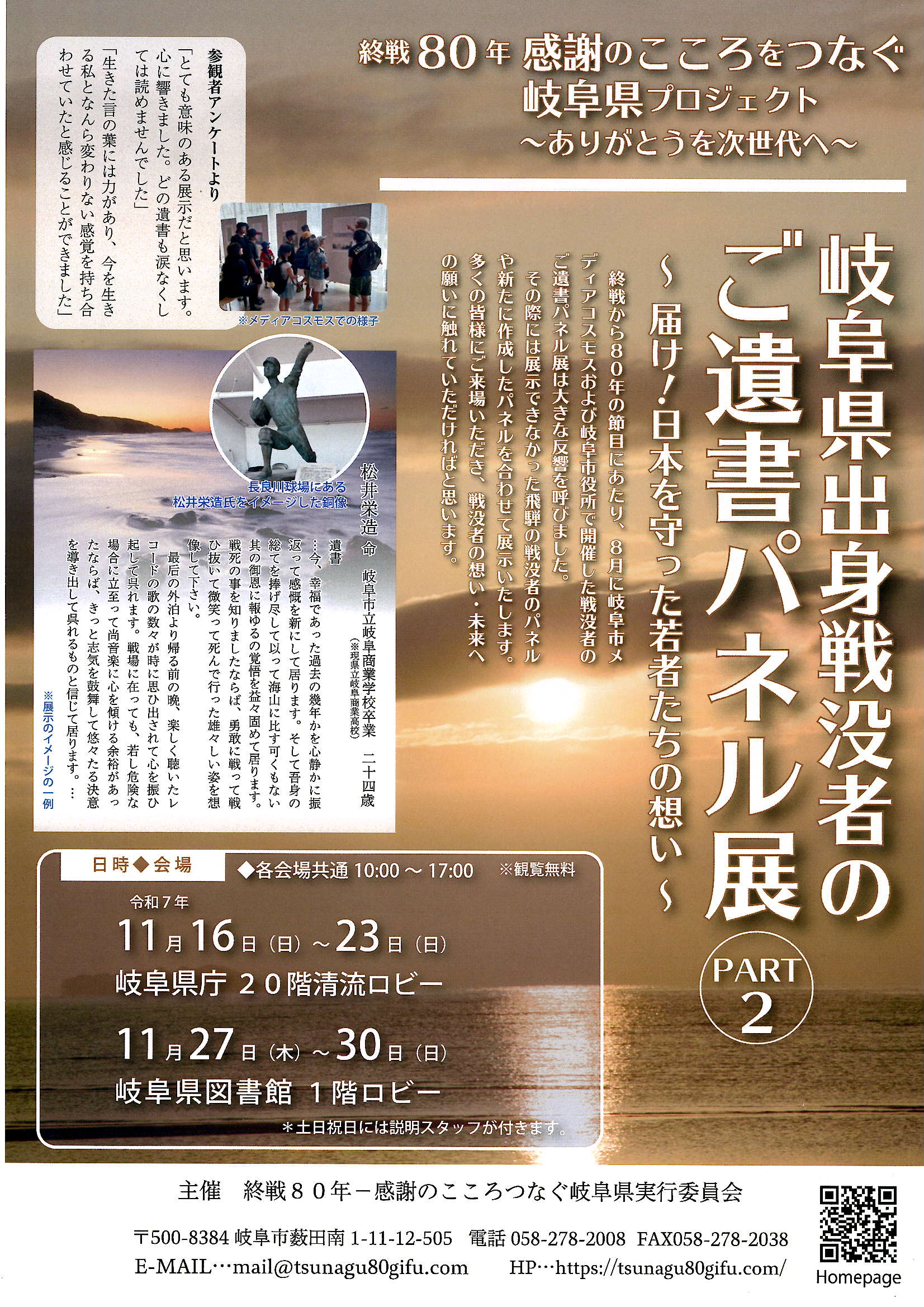 【岐阜県】11月16日~30日 岐阜県出身戦没者のご遺書パネル展 PART2