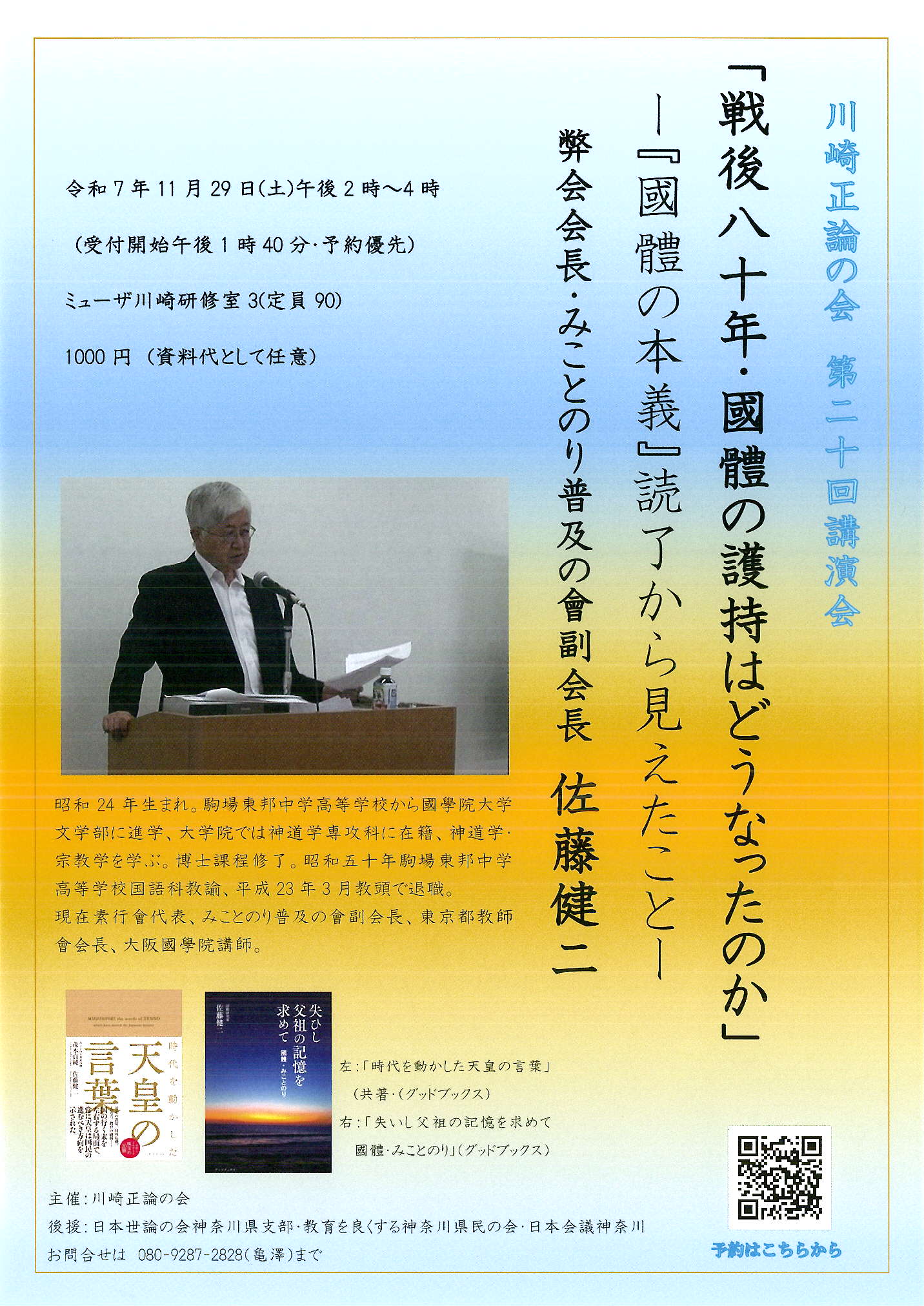 【神奈川県】11月29日 川崎正論の会 第二十回講演会