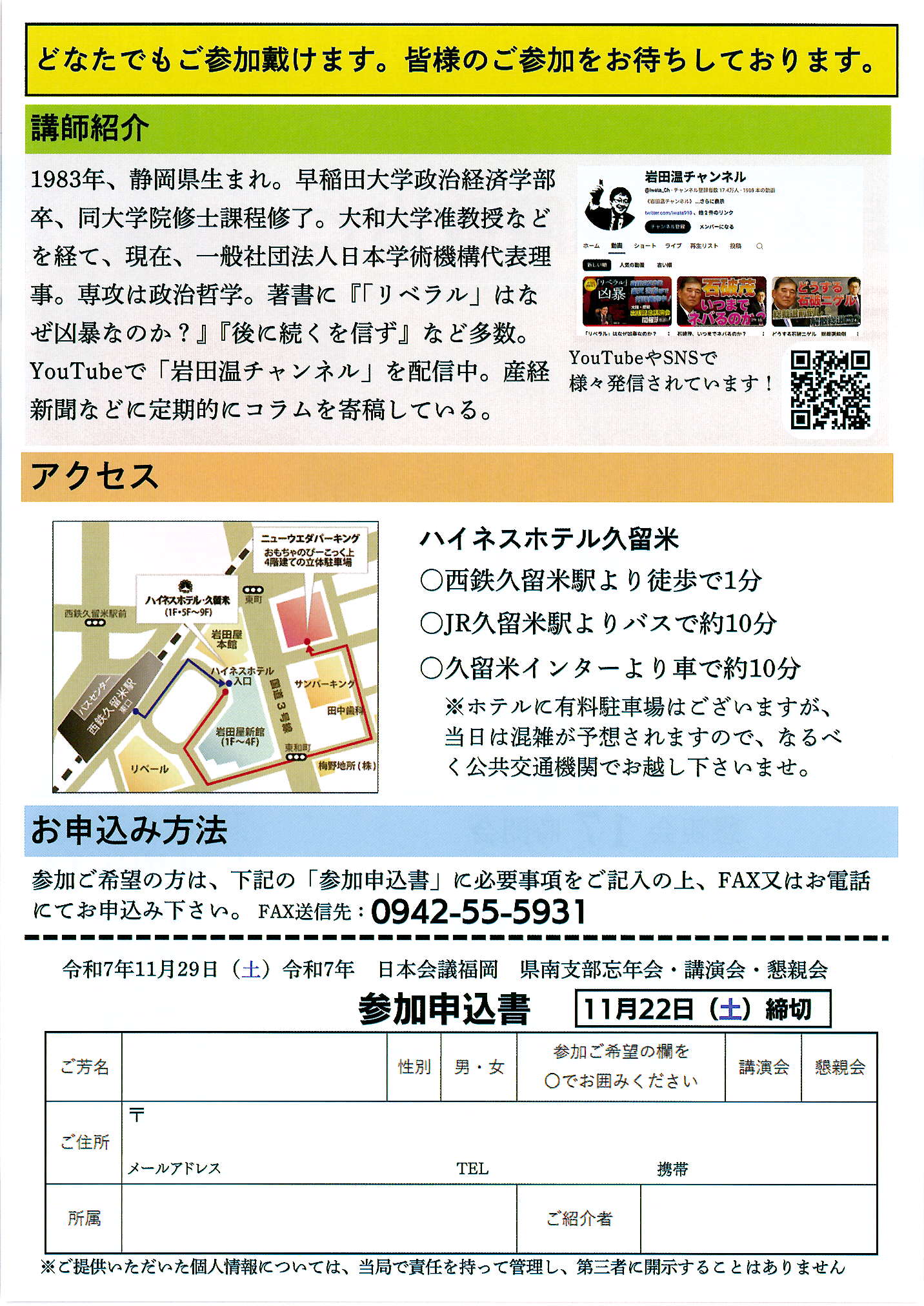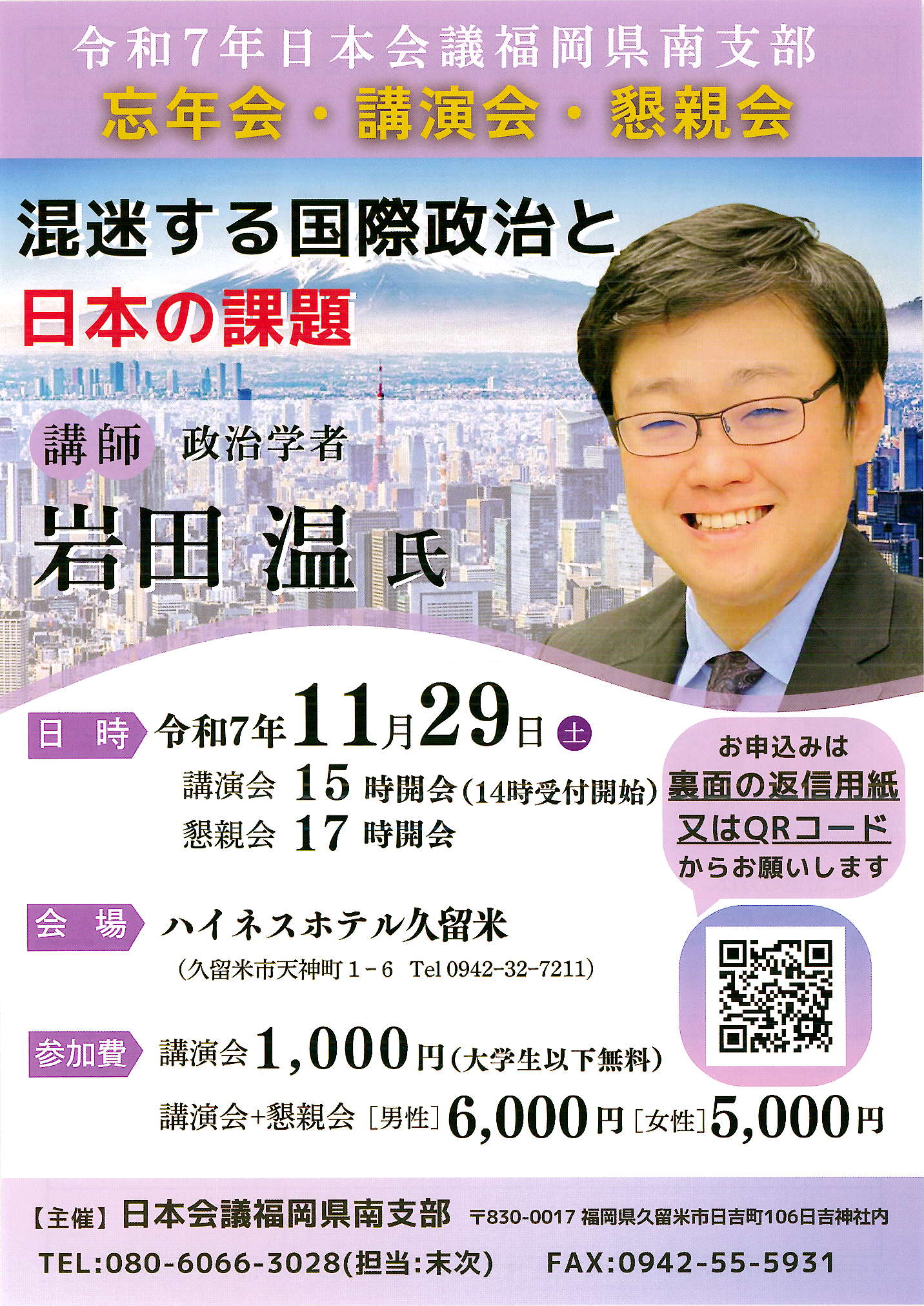 【福岡県】11月29日 令和7年日本会議福岡県南支部 忘年会・講演会・懇親会