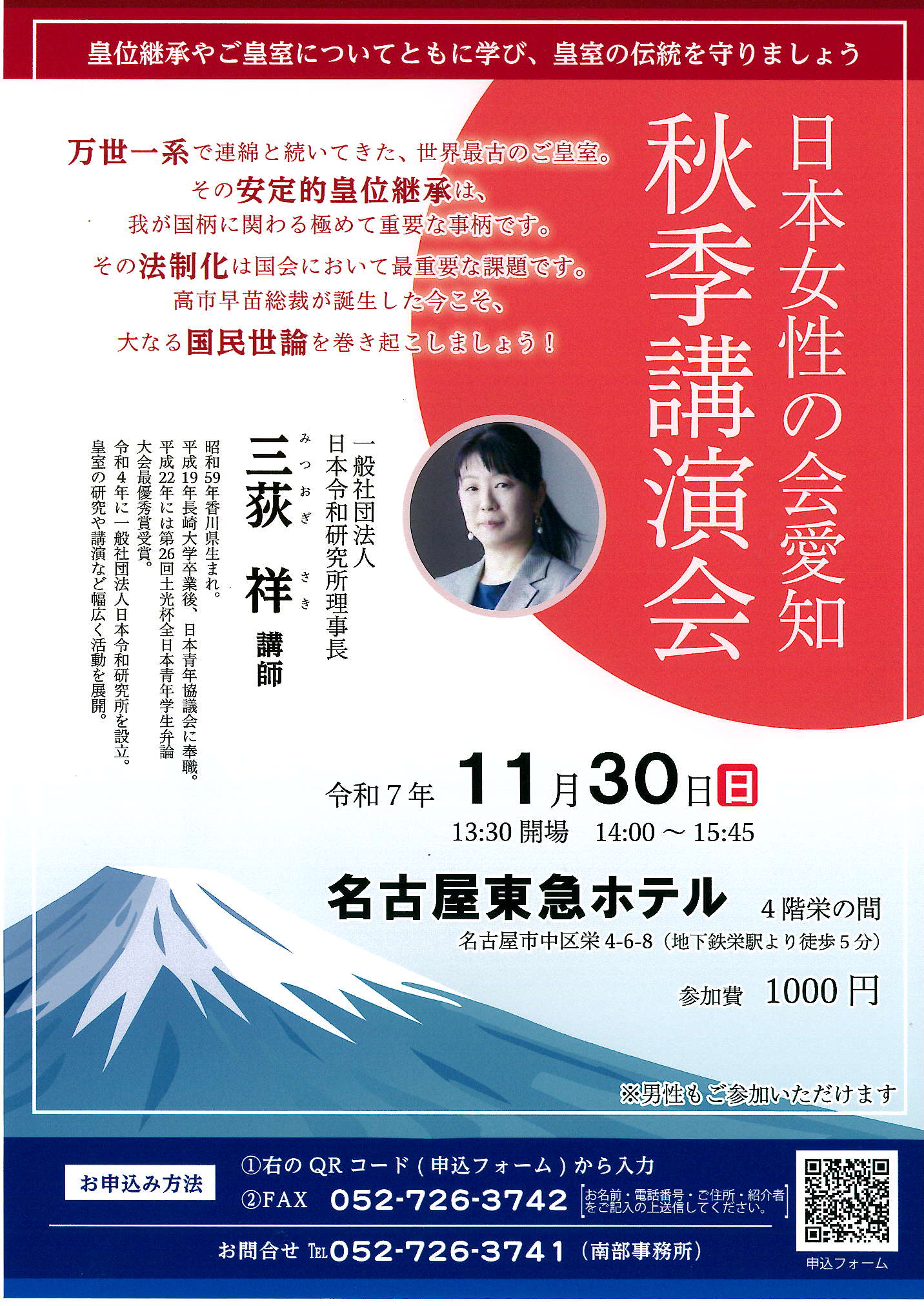 【愛知県】11月30日 日本女性の会愛知 秋季講演会