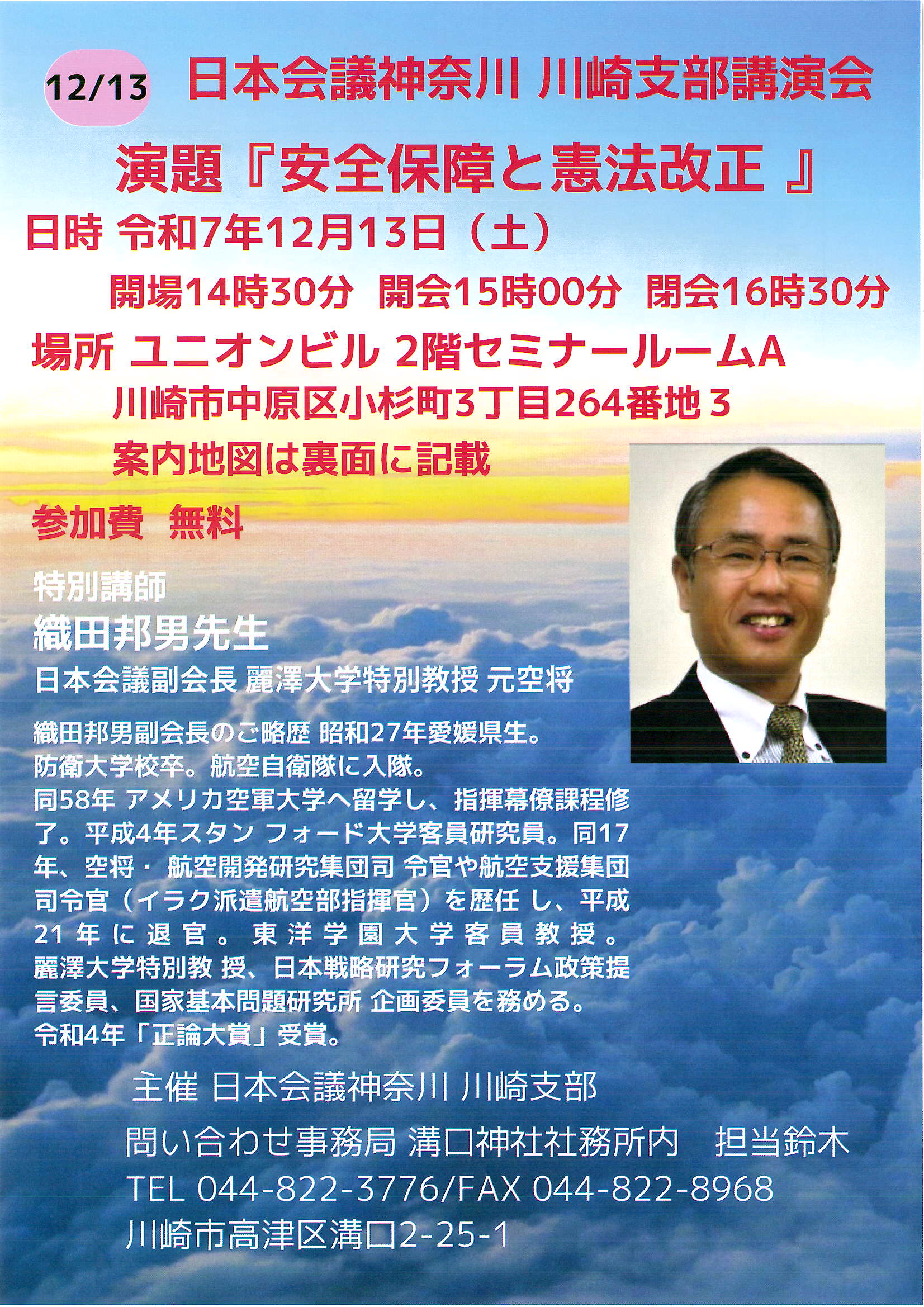 お問い合わせ:日本会議神奈川横浜支部事務局 師岡熊野神社内(担当:瀬尾)