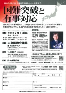 【広島県】6月21日 日本会議広島 令和7年度総会・記念講演会