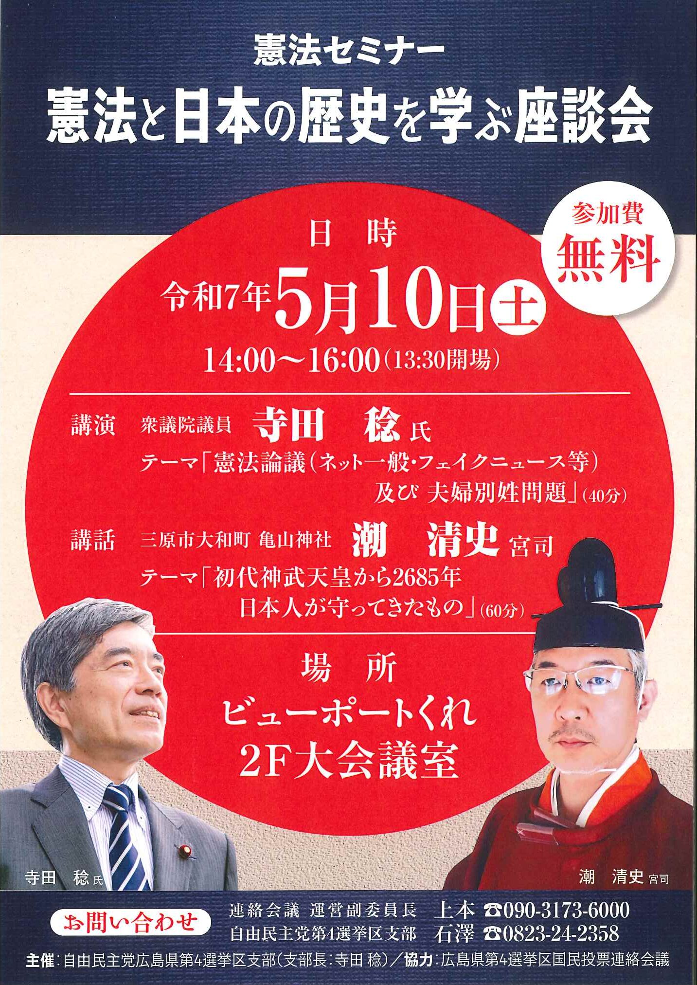 【広島県】5月10日 憲法セミナー 憲法と日本の歴史を学ぶ座談会