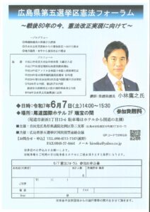 【広島県】6月7日 広島県第五選挙区憲法フォーラム