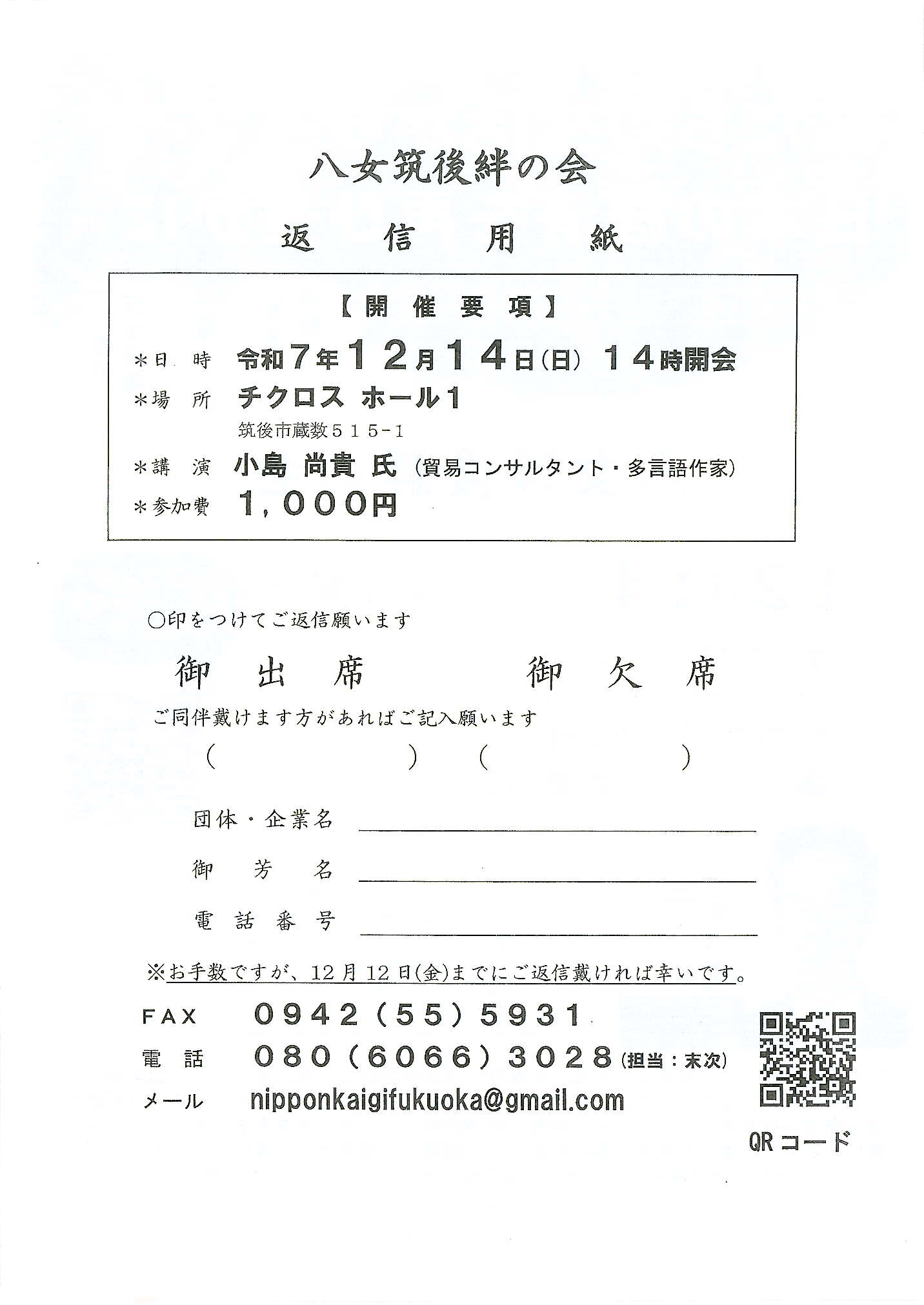 メール✉ nipponkaigifukuoka@gmail.com 電話☎ 092-406-7615