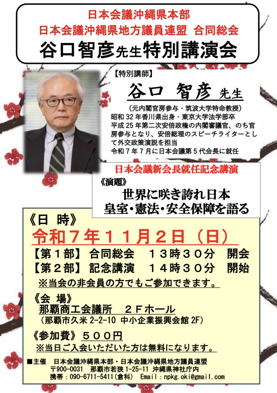 【沖縄県】11月2日 日本会議沖縄県本部 谷口智彦先生特別講演会