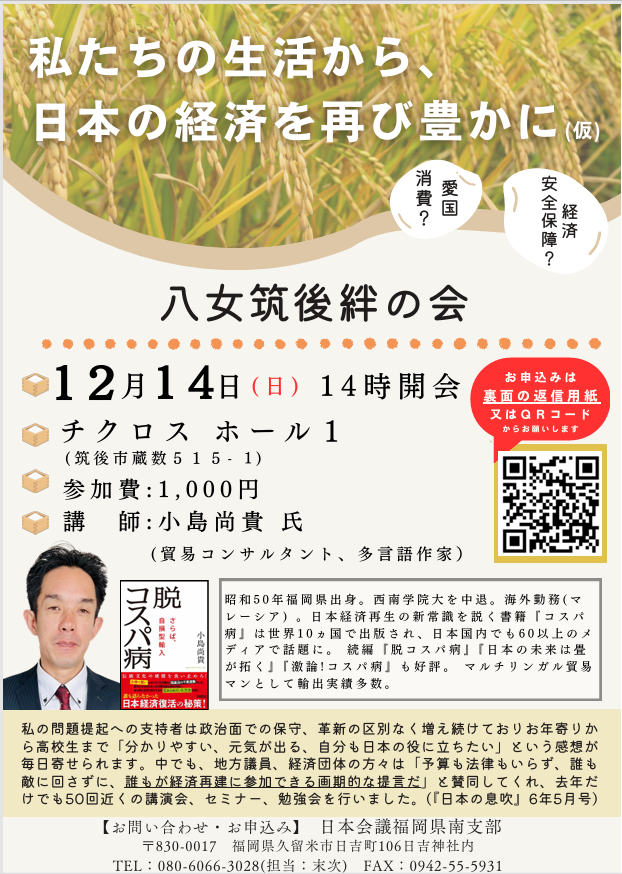 【福岡県】12月14日 八女筑後の会-私たちの生活から、日本の経済を再び豊かに-