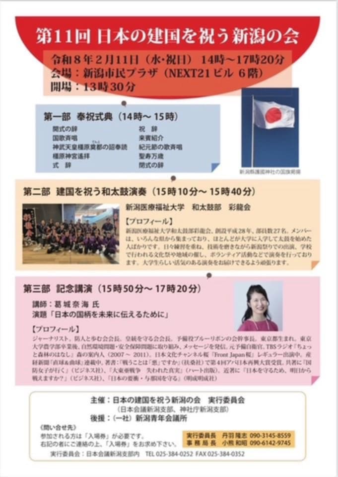 【新潟県】2月11日 第11回 日本の建国を祝う新潟の会