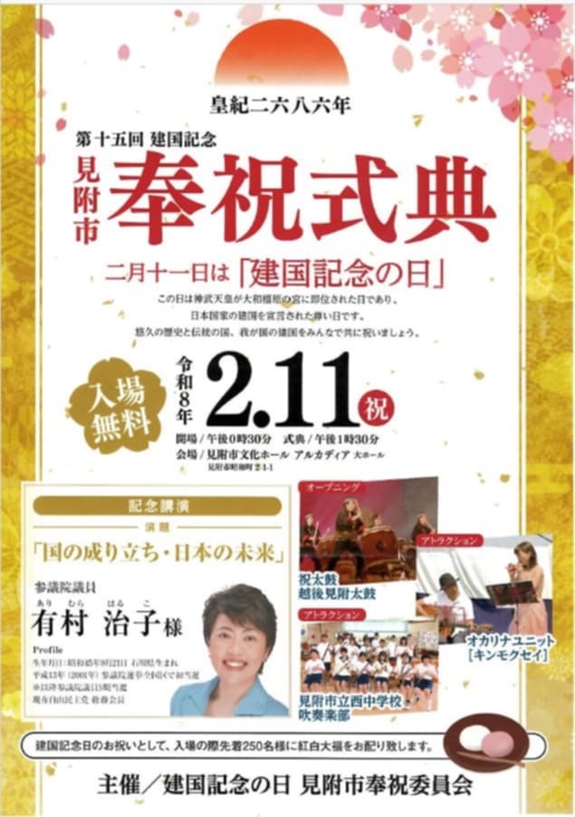 【愛知県】2月11日 日本の建国を祝う愛知県民の集い