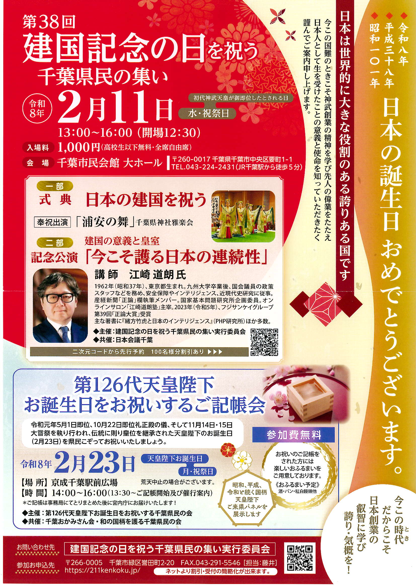 【千葉県】2月11日 第38回建国記念の日を祝う千葉県民の集い